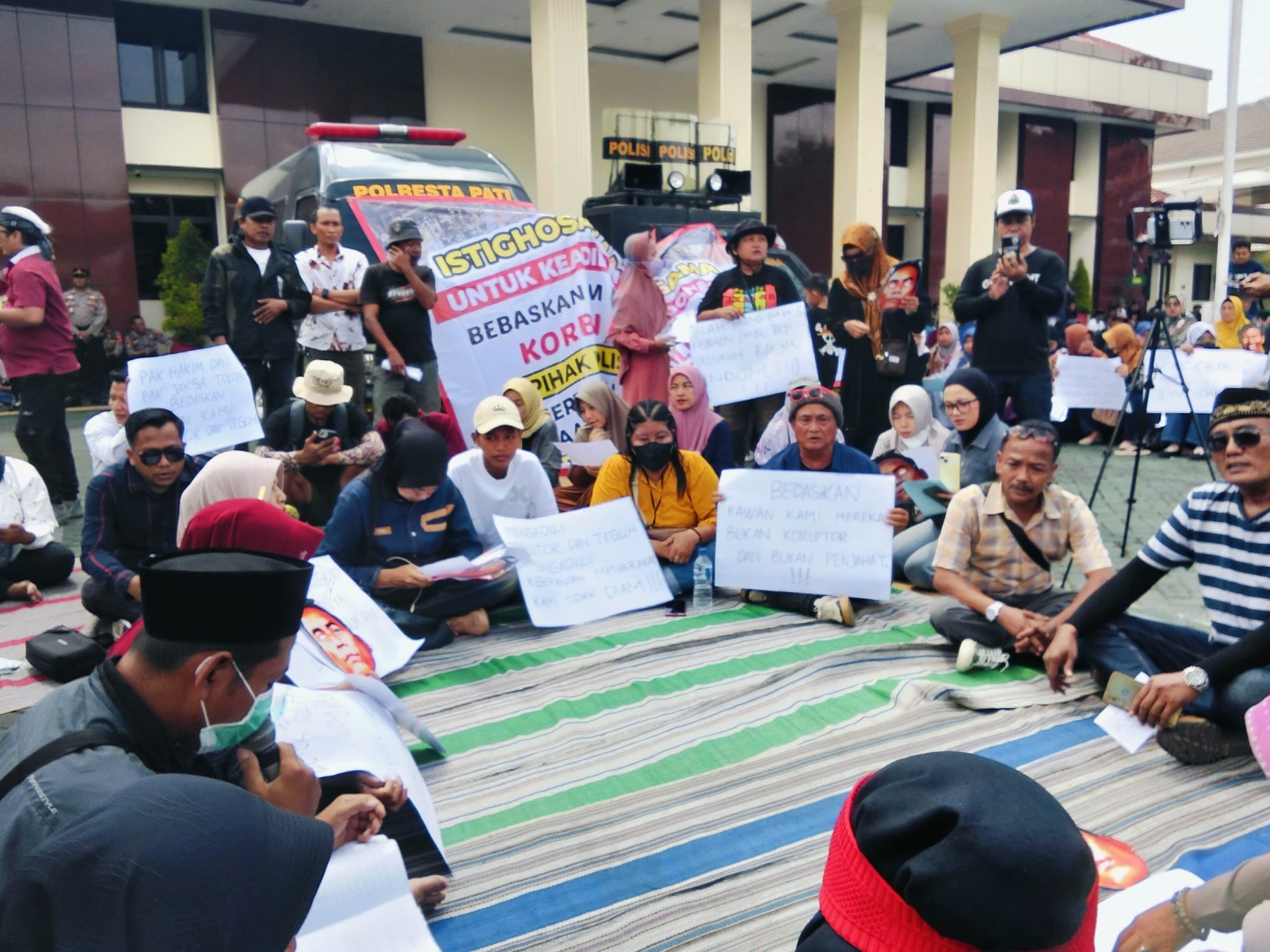 “Kegiatan kawan-kawan ini dari Aliansi Masyarakat Pati Bersatu mau mengadakan acara aksi damai terkait dengan peristiwa hukum yang diterima oleh Saudara Supriyono (Botok) dan Teguh Istiyanto,” ujar Koordinator AMPB, Slamet Riyadi. (Red)