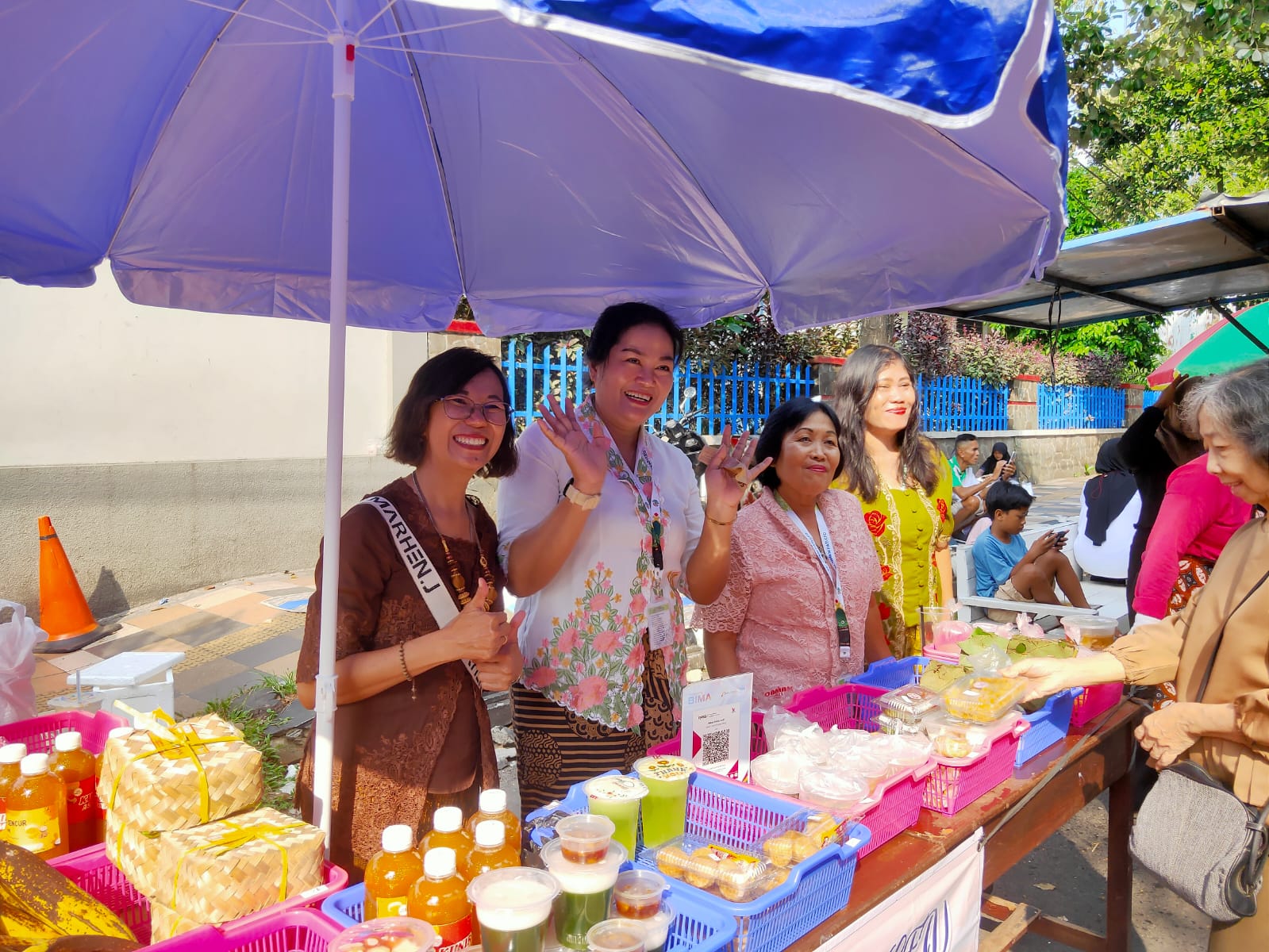 Salah satu yang turut memeriahkan CFD adalah komunitas Wanita Katolik Republik Indonesia (WKRI) Cabang Kabupaten Pati. Agnes bersama rekan-rekannya tampil kompak mengenakan kebaya sambil membuka stand makanan tradisional.